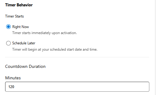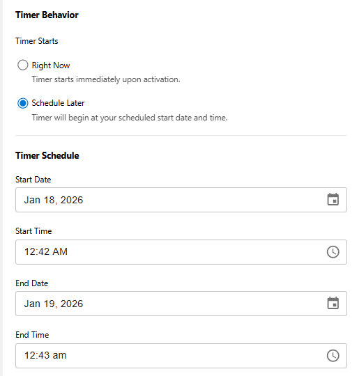 Set the exact timeframe during which the timer will be displayed.