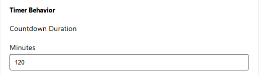 Enter the total number of minutes for the countdown. For example, entering 120 will display a two-hour timer for visitors.