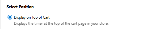 Choose where the Cart Page Timer appears within your cart layout. This allows you to control how noticeable the countdown is for shoppers.