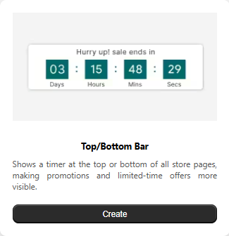 The Top/Bottom Bar Timer is a floating notification bar that displays a real-time countdown at the top or bottom of your store pages. It’s built to immediately catch attention and motivate shoppers to act quickly on time-sensitive offers, flash deals, or special promotions.